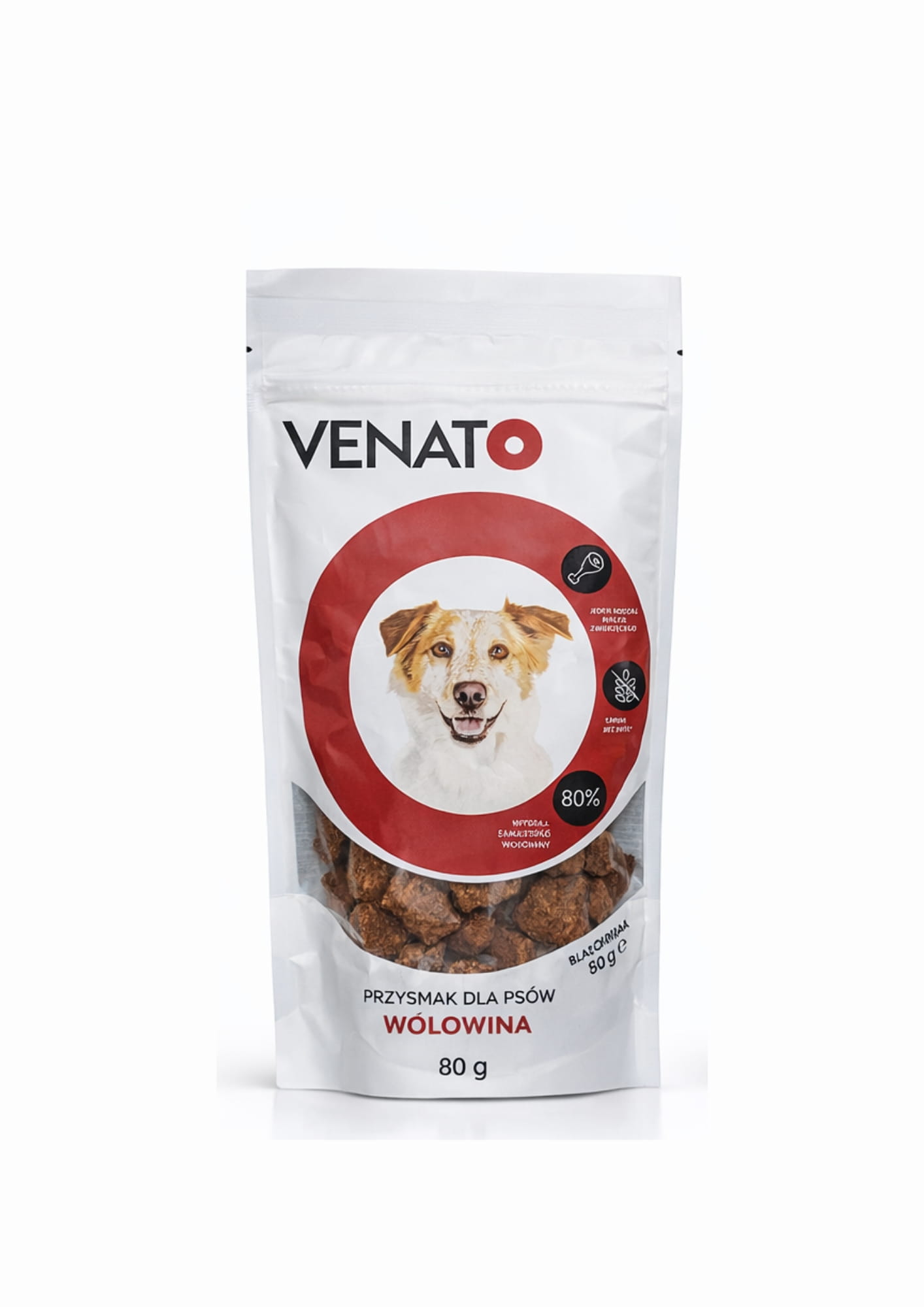 Przysmaki te wspomagają utrzymanie zdrowych mięśnie i dają mnóstwo energii, a ich odpowiednia konsystencja pomaga w naturalny sposób zadbać o higienę zębów. Podawaj swojemu psu pyszne przysmaki VENATO w czasie treningów lub jako przekąskę. Zdrowie w każdym kęsie gwarantowane!